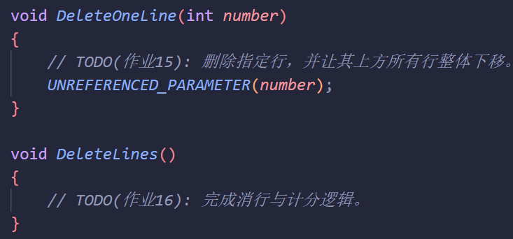 完成第五阶段消行与得分逻辑 完成函数15 16